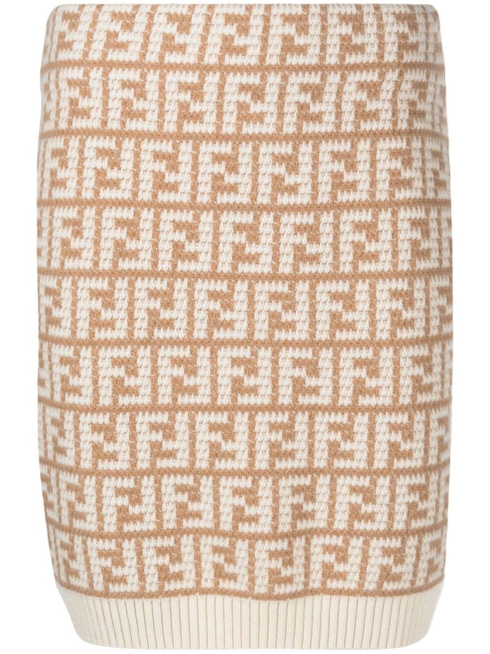 FF-logo pattern knit skirt beige/white cashmere fine knit ribbed detailing FF-logo print elasticated waistband short length Made in Italy Composition Cashmere 100% SIZE & FIT Model measurements Height 5 ft 9 in(1.76 m) Bust/Chest 33.07 in(84 cm) Hips 34.64 in(88 cm) Waist 25.59 in(65 cm) FittingInformation This piece fits true to size. We recommend you get your regular size Cut for a slim fit Made with a mid-weight fabric