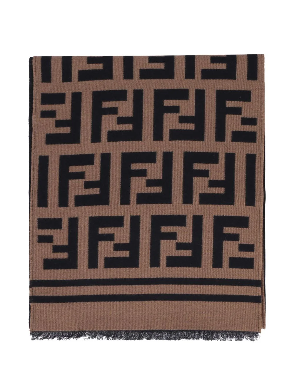 FF scarf Highlights - Brown and black - Wool-silk blend - Brown - Wool-silk blend - Fine knit - Ff-logo print - Raw-cut edge Made in Italy Composition Wool 95%, Silk 5% Washing instructions Read Manufacturer Guidelines