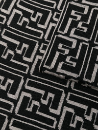 FF-monogram knit scarf black/white wool blend FF-logo print knitted construction long length Made in Italy Composition Wool 98%, Polyamide 2% SIZE & FIT Model measurements Height 6 ft 0 in(1.84 m) Bust/Chest 35.82 in(91 cm) Hips 37 in(94 cm) Waist 28.34 in(72 cm) Measurement LENGTH 70.86 in(180 cm) WIDTH 11.81 in(30 cm)