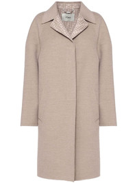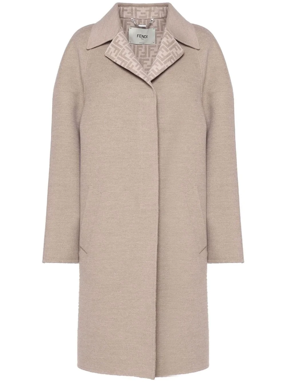 FF-motif coat Highlights - Beige - Wool blend/silk - Ff-logo print - Concealed front fastening - Notched collar - Contrasting collar - Long sleeves - Two side welt pockets - Central rear vent - Full lining Made in Italy Composition Lining: Silk 100% Outer: Wool 99%, Silk 1% Washing instructions Read Manufacturer Guidelines