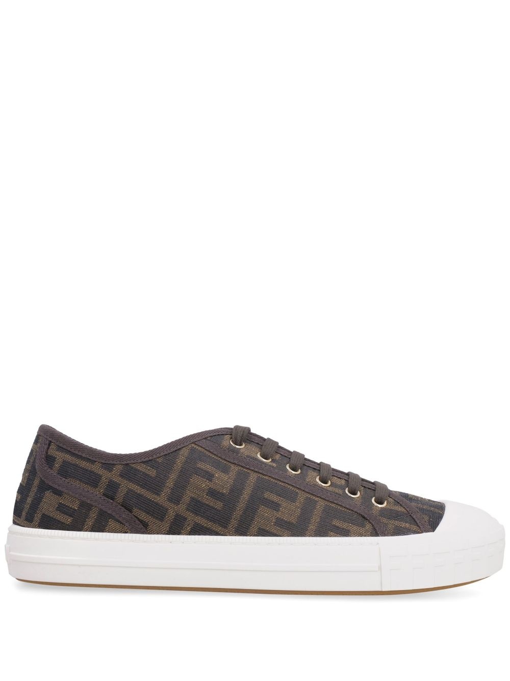FF-motif Domino sneakers A key Fendi motif, the FF logo appears throughout the house's collections. In signature brown and tobacco hues, it details these Domino sneakers for a branding-focused finish. Made in Italy Composition Sole: Rubber 100% Outer: Resin 100%, Polyamide 65%, Cotton 35% Lining: Cotton 100% SIZE & FIT FittingInformation This piece fits large – take one size down Measurement HEEL 0.78 in(2 cm)