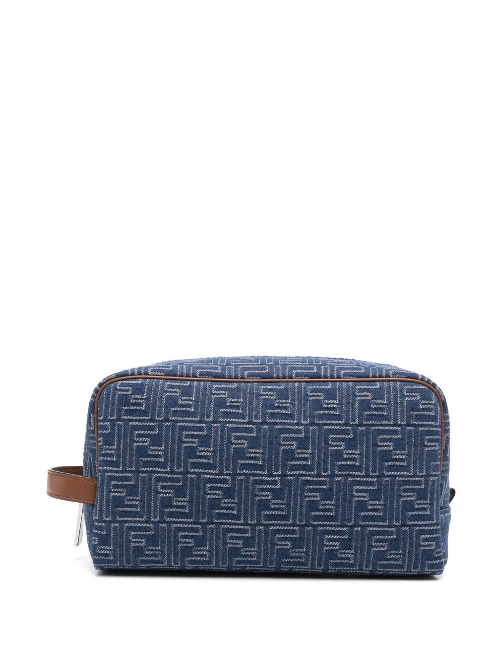 FF-print denim wash bag Highlights - Blue - Ff-logo print - All-around zip fastening - Leather handle Made in Italy Composition Outer: Denim 100% SIZE & FIT Measurement DEPTH 5.9 in(15 cm) HANDLE 1.96 in(5 cm) HEIGHT 5.9 in(15 cm) WIDTH 10.23 in(26 cm)