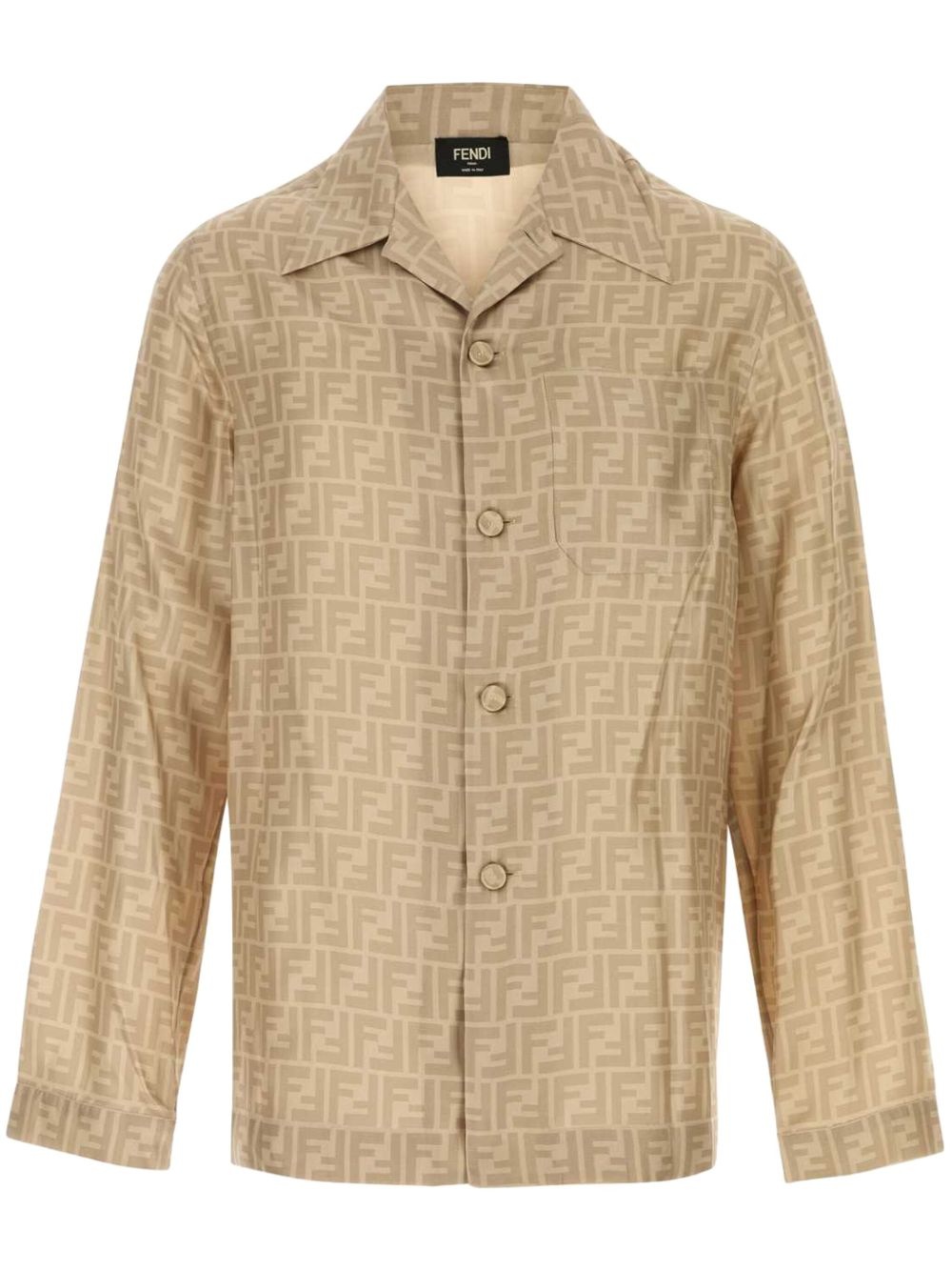 FF-print silk shirt Highlights - Sand beige - Front button fastening - Cuban collar - Long sleeves - Straight hem Made in Italy Composition Silk 100%