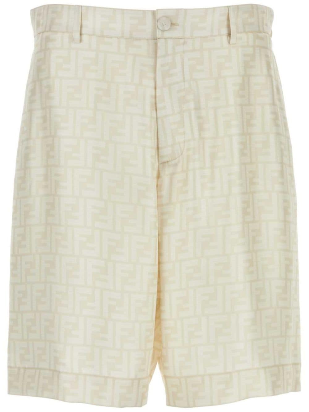 FF silk shorts Highlights - Light beige - Silk - Twill weave - Signature ff-pattern print - Front button and zip fastening - High-rise - Belt loops - Slip pockets to the sides - Rear patch pocket - Above-knee length Made in Italy Composition Outer: Silk 100% Lining: Cupro 100%
