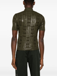 FF Sparkle polo shirt Highlights - Olive green - Knitted construction - High-shine finish - Signature ff pattern - Front button placket - Polo collar - Short sleeves - Straight hem Made in Italy Composition Polyurethane 46%, Wool 43%, Polyester 11% SIZE & FIT Model measurements Height 6 ft 2 in(1.88 m) Bust/Chest 36.61 in(93 cm) Hips 35.82 in(91 cm) Waist 27.95 in(71 cm) FittingInformation Designed for a slim fit, this polo shirt offers a comfortable fit that sits just away from the body Made with a midweight knit, this piece offers some stretch