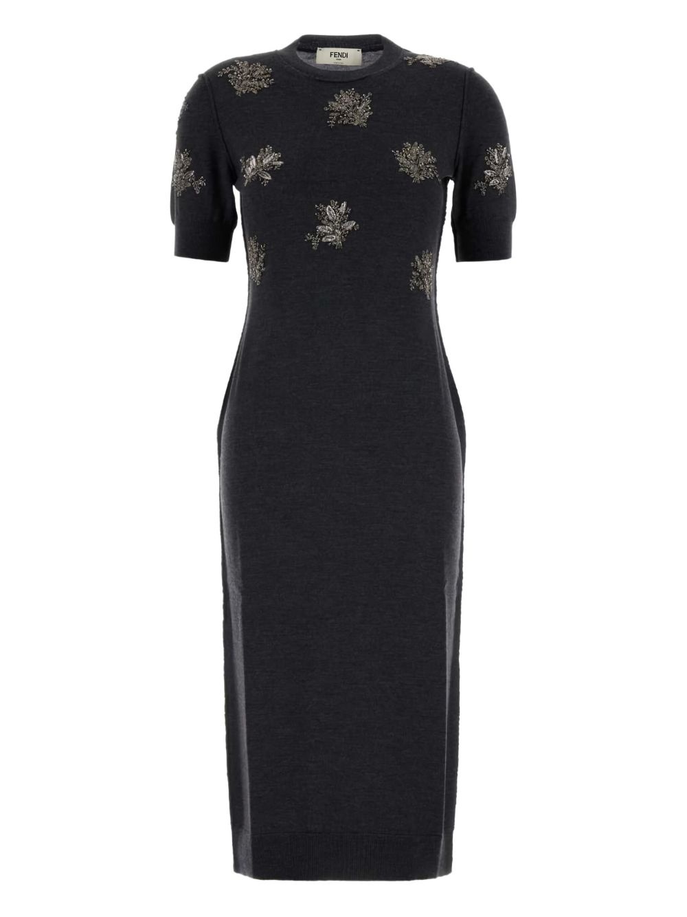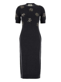 floral-embroidered midi dress Highlights - Black - Slip-on style - Ribbed-knit edge - Crew neck - Short sleeves Made in Italy Composition Wool 98%, Elastane 2%
