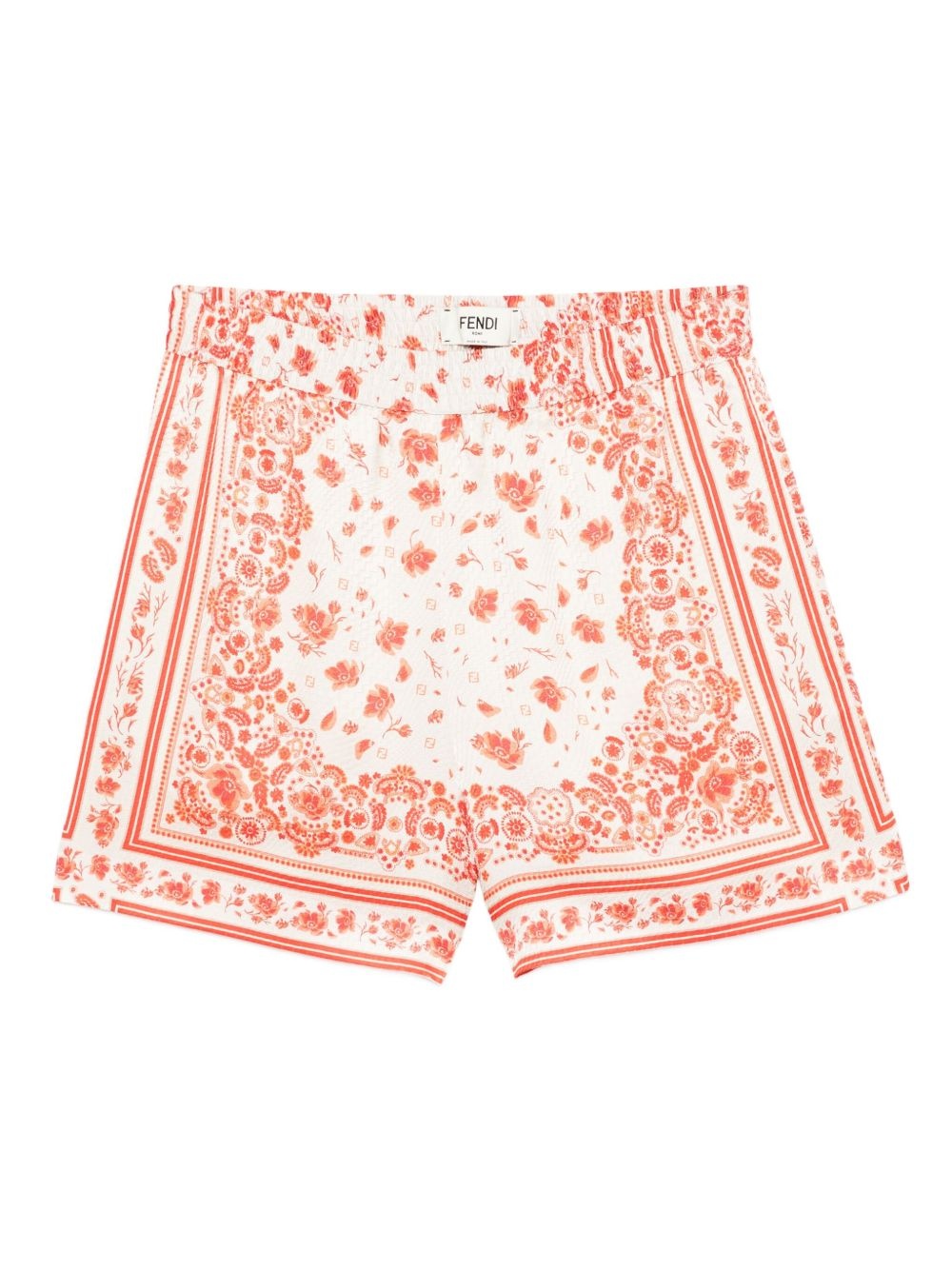 floral-print elasticated-waist shorts Highlights - Beige - Floral print - Elasticated waist - Striped trim Made in Italy Composition Lining: Silk 100% Outer: Silk 100% Washing instructions Dry Clean Only