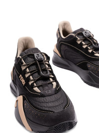 Flow mesh sneakers Highlights - Designed with a bold contrast detailing - Features a distinctive lace-up fastening - Includes a chunky sole for increased comfort - Showcases a unique logo accent for added style - Presented in a striking primary black Imported Composition Outer: Calf Leather 100%, Polyester 73%, Polyurethane 27% Lining: Polyester 100% Sole: Rubber 100%