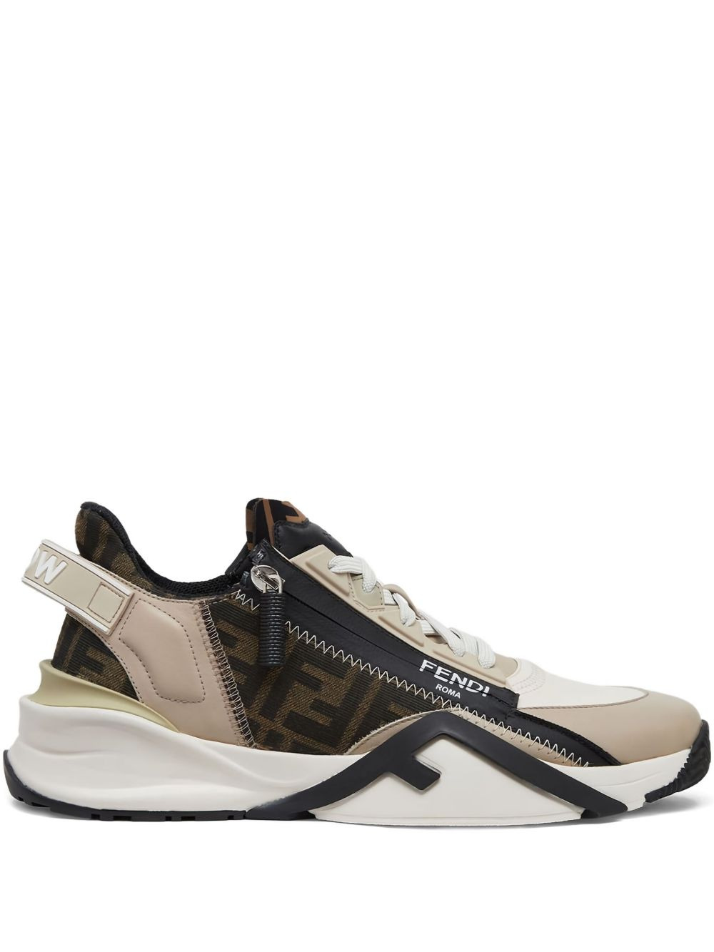 Flow zip-fastening sneakers Highlights - Beige - Ff logo pattern - Zip fastening - Lace-up closure - Chunky sole Made in Italy Composition Outer: Calf Leather 100%, Polyamide 65%, Cotton 35% Sole: Rubber 100% Lining: Polyester 100%