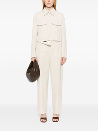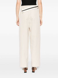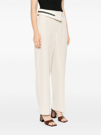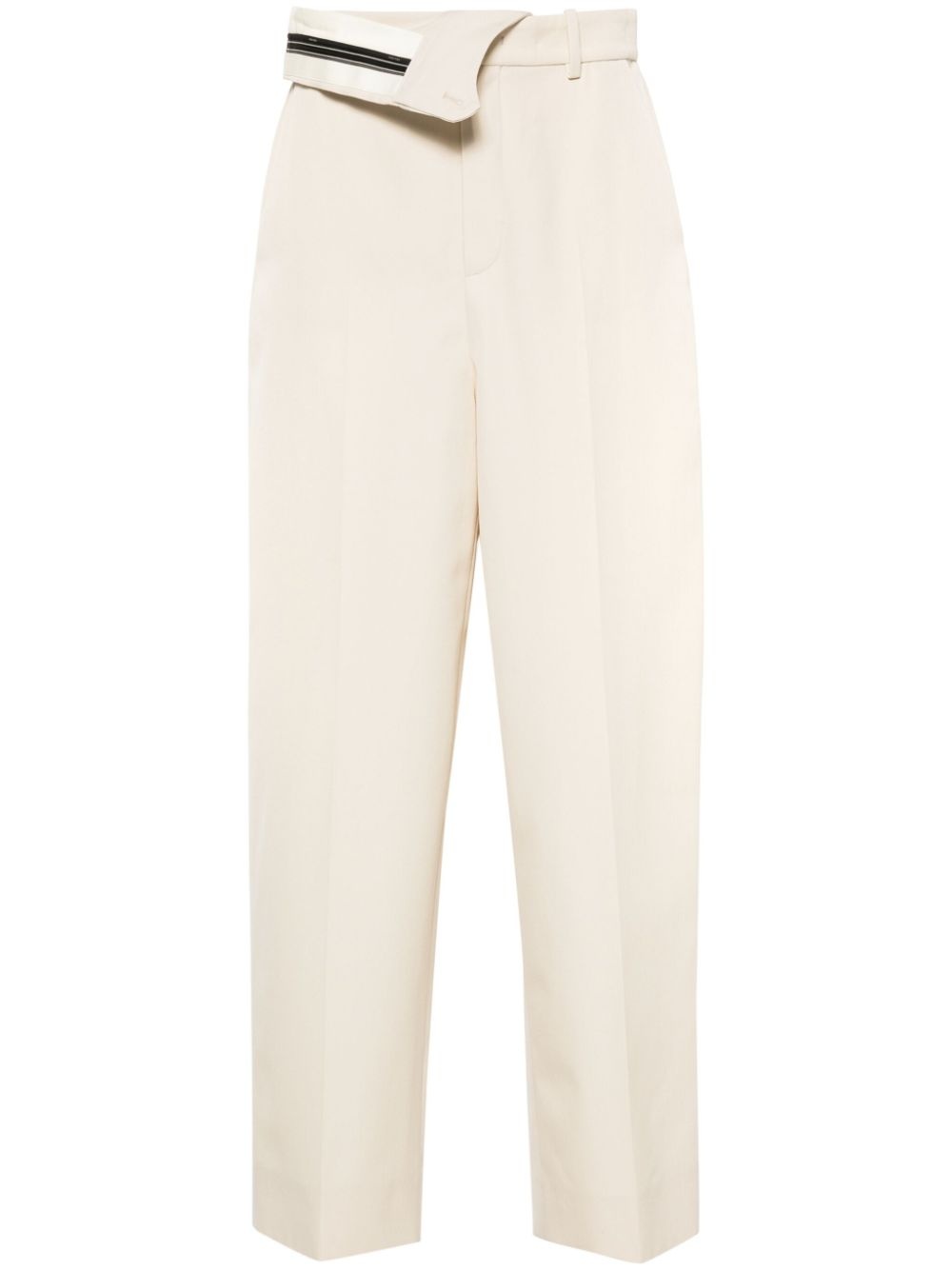 foldover waist gabardine trousers Highlights - Cream white - Wool-cotton blend - Gabardine weave - Asymmetric inside-out waist panel - Mid-rise - Belt loops - Front zip and hook fastening - Slip pockets to the sides - Pressed crease - Tapered leg - Silk lining Made in Italy Composition Outer: Virgin Wool 62%, Cotton 38% SIZE & FIT Model measurements Height 5 ft 10 in(1.77 m) Bust/Chest 33.85 in(86 cm) Hips 37 in(94 cm) Waist 26.37 in(67 cm) FittingInformation Designed with a wide-leg cut, these trousers allow for a close fit at the waist and offer a loose and roomy fit over the leg Made from a midweight non-stretch fabric This piece fits true to size – take your usual size