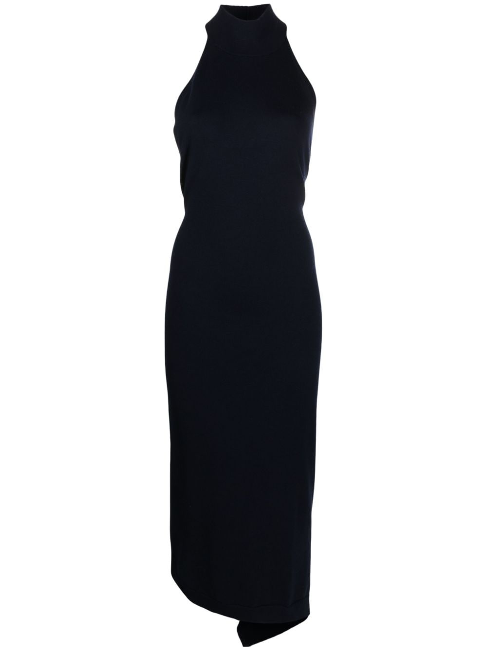 funnel-neck sleeveless ribbed-knit dress Highlights - Navy blue - Stretch-wool - Ribbed knit - Ribbed-knit edge - High neck - Sleeveless - Fitted waistline - Open back - Central rear vent - Asymmetric hem - Mid-length Made in Italy Composition Wool 95%, Polyamide 4%, Elastane 1% SIZE & FIT Model measurements Height 5 ft 10 in(1.79 m) Bust/Chest 33.07 in(84 cm) Hips 35.82 in(91 cm) Waist 24.01 in(61 cm) FittingInformation Designed for a close fit throughout The vented hem offers movement at the rear Made with a midweight knit, this piece offers some stretch This piece fits true to size – take your usual size