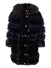fur quilted coat Highlights - Blue - Fur trim - Quilted panels - Button fastening - Drawstring waist - Side pockets Made in Italy Composition Polyester 100% Washing instructions Read Manufacturer Guidelines