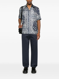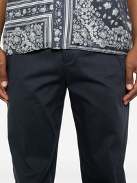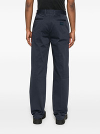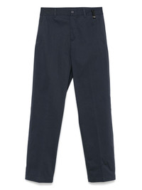 gabardine trousers Highlights - Prussian blue - Concealed front button, hook and zip fastening - Belt loops - Two side inset pockets - Two rear welt pockets Made in Italy Composition Lining: Polyester 65%, Cotton 35% Outer: Cotton 97%, Elastane 3% SIZE & FIT Model measurements Height 6 ft 1 in(1.85 m) Bust/Chest 38.58 in(98 cm) Hips 37 in(94 cm) Waist 30.31 in(77 cm) FittingInformation Designed for a straight-leg, allowing for an unrestricted and comfortable fit over the leg Made from a midweight stretch fabric, this piece offers elasticity and flexibility when worn