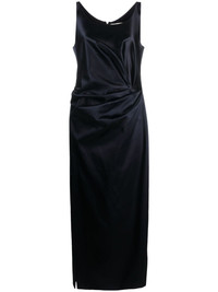 gathered silk dress Imagined in a midnight blue tone, this shift dress from Fendi catches the light through gathered detailing and its smooth silk construction. Highlights - Midnight blue - Silk - Scoop neck - Rear zip fastening - Sleeveless - Gathered detailing - Shift style - Straight hem - Ankle-length Made in Italy Composition Cotton 70%, Silk 30% Lining: Silk 100% SIZE & FIT Model measurements Height 5 ft 10 in(1.78 m) Bust/Chest 32.67 in(83 cm) Hips 35.43 in(90 cm) Waist 23.22 in(59 cm) FittingInformation Designed for a slim fit that sits just away from the body offering a close yet comfortable fit The vented hem offers movement at the rear Made from a midweight non-stretch fabric This piece fits true to size – take your usual size