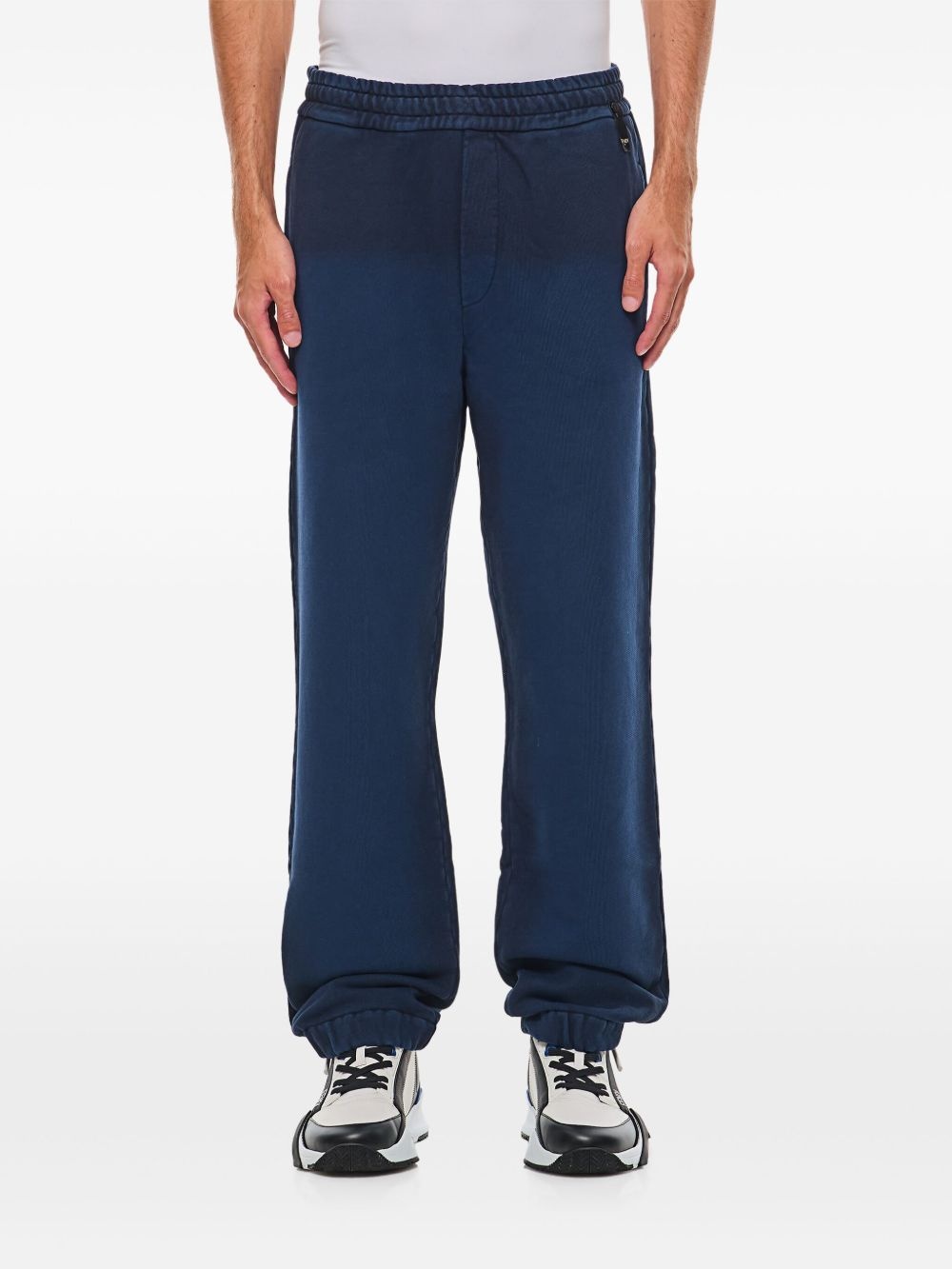 gradient effect track pants Highlights - Indigo blue - Elasticated waistband - Two side slit pockets - Gradient effect - Embroidered logo to the rear Made in Italy Composition Cotton 100% SIZE & FIT FittingInformation Designed for a relaxed straight leg, allowing a comfortable and loose fit over the leg Adjust this piece’s waistband to your preference using the drawstring Made from a midweight non-stretch fabric, this piece offers minimal elasticity when worn