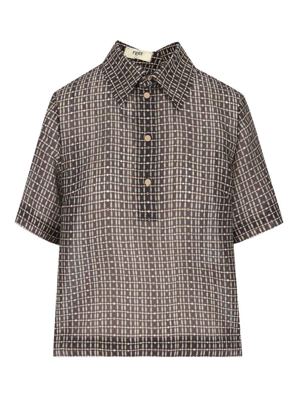 grid-pattern polo top Highlights Made in Italy Composition Silk 56%, Polyamide 44%