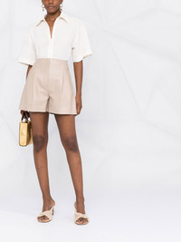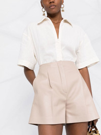 high-waisted A-line shorts Fendi pairs the brand's sophisticated design style with Italian craftsmanship in this pair of tailored shorts. Featuring an A-line silhouette and tonal colourway, the garment has a timeless feel. Made in Italy Composition Lamb Skin 100% SIZE & FIT Model measurements Height 6 ft 0 in(1.84 m) Bust/Chest 36.61 in(93 cm) Hips 36.22 in(92 cm) Waist 29.52 in(75 cm)