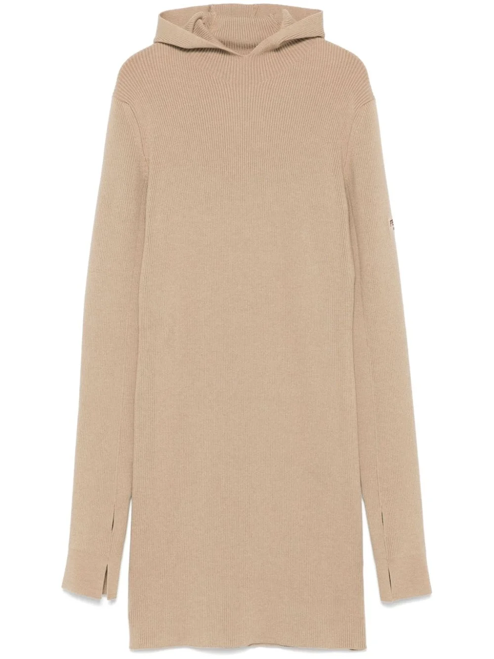hooded mini dress Highlights - Beige - Wool blend - Fine ribbed - Classic hood - Mock neck - Long sleeves - Embroidered logo at the sleeve - Unlined - Straight hem - Thigh-length Made in Italy Composition Wool 58%, Silk 25%, Polyamide 15%, Elastane 2% SIZE & FIT Model measurements Height 5 ft 11 in(1.8 m) Bust/Chest 33.07 in(84 cm) Hips 37.4 in(95 cm) Waist 25.19 in(64 cm) FittingInformation Designed for a close fit throughout Made with a midweight knit, this piece offers some stretch Washing instructions Dry Clean Only