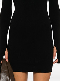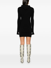 hooded mini dress Highlights - Black - Fine ribbed - Classic hood - Mock neck - Long sleeves - Embroidered logo at the sleeve - Unlined - Straight hem - Thigh-length Made in Italy Composition Wool 58%, Silk 25%, Polyamide 15%, Elastane 2% Washing instructions Dry Clean Only