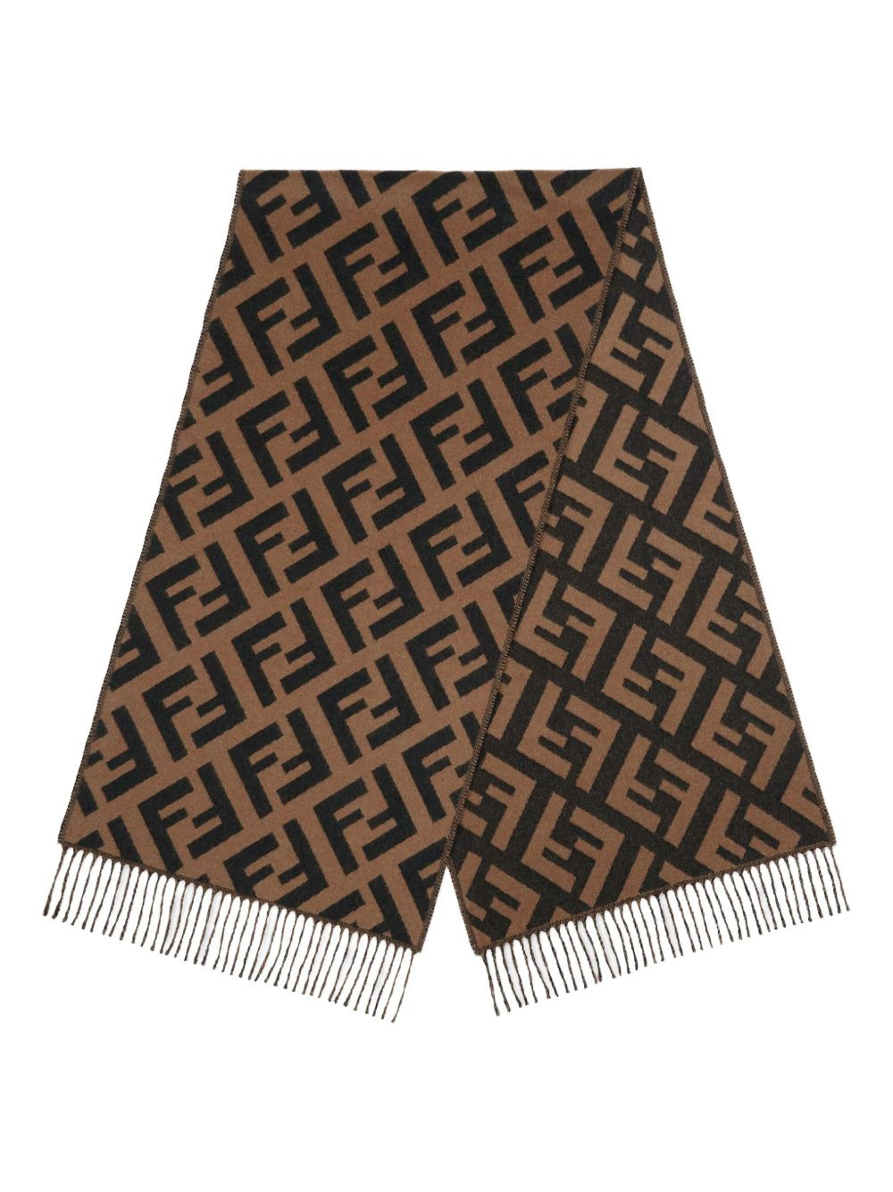 jacquard knit FF logo scarf It's a known fact that accessories have the power to make or break an outfit. This jacquard knit FF logo scarf from Fendi, however, might just make your day. Treat yourself to one. Highlights - Tobacco brown/black - Alpaca-mohair-wool blend - Ff-logo print - Full jacquard - Fringed edge Made in Italy Composition Cashmere 100% SIZE & FIT Measurement LENGTH 66.92 in(170 cm) WIDTH 17.71 in(45 cm) Washing instructions Read Manufacturer Guidelines