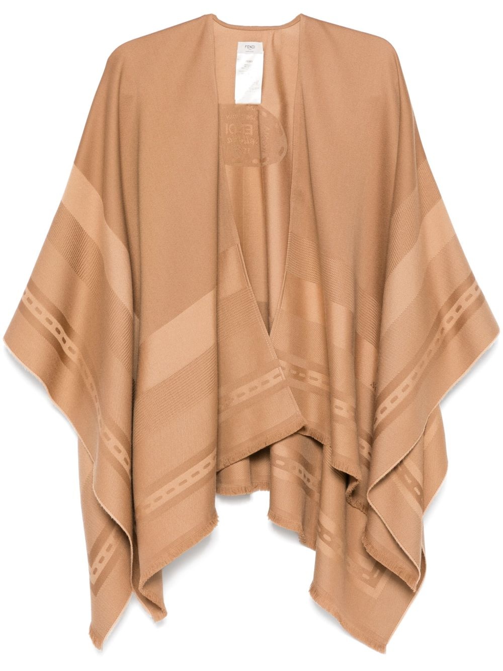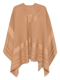 jacquard poncho Highlights - Ochre brown - Jacquard logo motif - Cape design - Open front - Fringed edge Made In Italy Composition Virgin Wool 66%, Cashmere 34% SIZE & FIT Measurement LENGTH 29.92 in(76 cm)