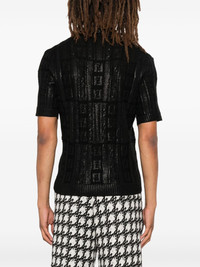 knitted polo shirt Highlights - Black - Stretch-design - Metallic finish - Cable knit - Intarsia-knit logo - Short front button fastening - Polo collar - Short sleeves - Ribbed cuffs and hem - Straight hem Made in Italy Composition Polyurethane 46%, Wool 43%, Polyester 11% SIZE & FIT Model measurements Height 6 ft 2 in(1.88 m) Bust/Chest 35.43 in(90 cm) Hips 36.61 in(93 cm) Waist 27.95 in(71 cm) FittingInformation Designed for a slim fit, this polo shirt offers a comfortable fit that sits just away from the body Made with a midweight knit, this piece offers some stretch