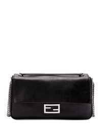 leather baguette shoulder bag Highlights - Black - Calf leather - Smooth grain - Baguette cut - Foldover top with magnetic fastening - Single top handle - Chain-link shoulder strap - Ff logo plaque - Main compartment - Internal zip-fastening pocket - Suede lining Made in Italy Composition Outer: Calf Leather 100% SIZE & FIT Measurement DEPTH 2.75 in(7 cm) HEIGHT 8.26 in(21 cm) STRAP 17.71 in(45 cm) WIDTH 14.96 in(38 cm)
