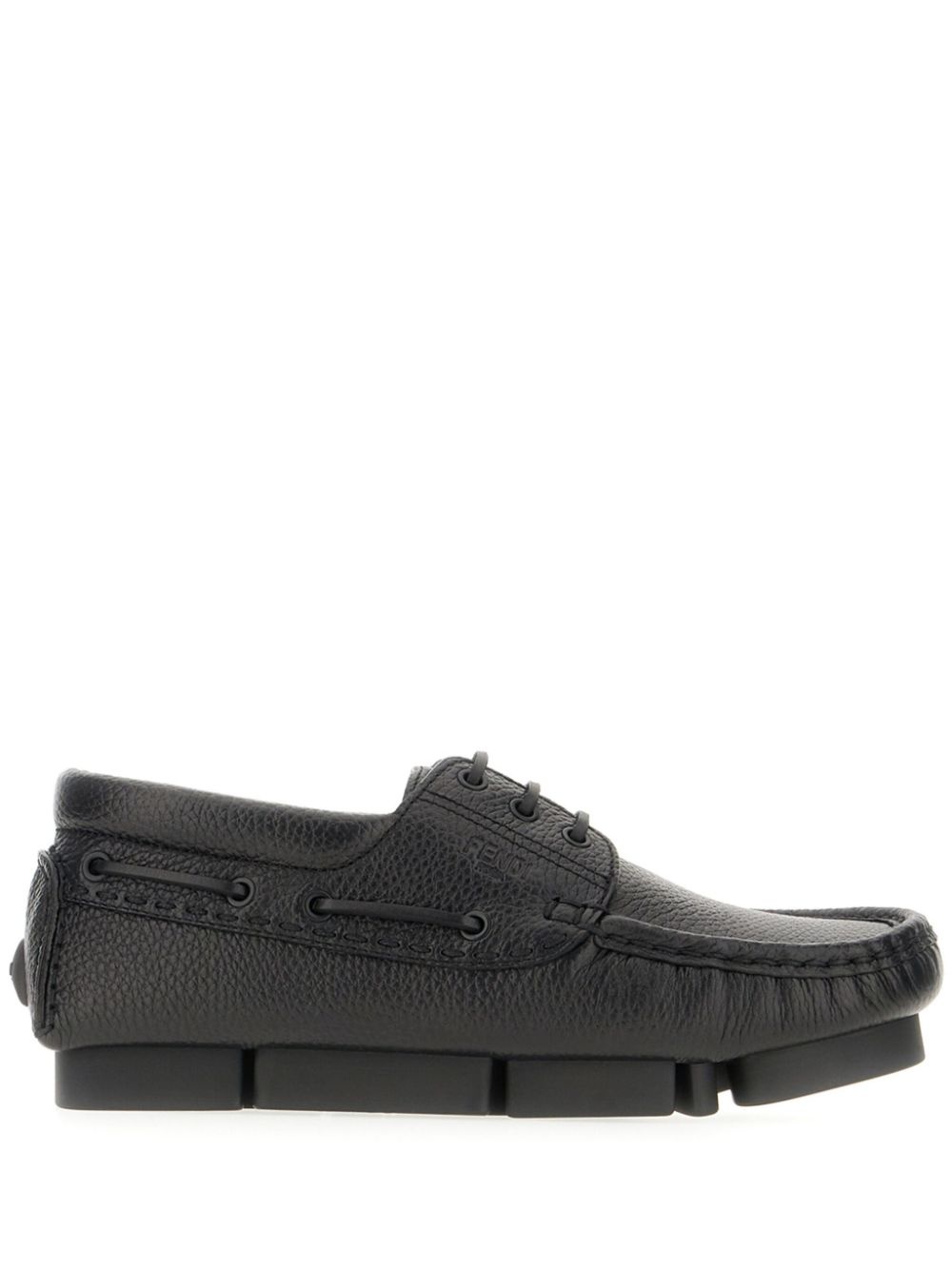 leather lace-up loafers Highlights - Black - Calf leather - Pebbled texture - Front lace-up fastening - Branded heel counter - Embossed logo to the side - Round toe - Contrasting rubber sole Made in Italy Composition Sole: Rubber 100% Lining: Calf Leather 100% Outer: Calf Leather 100%