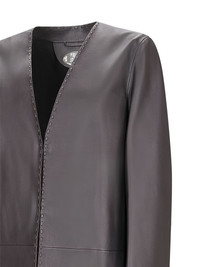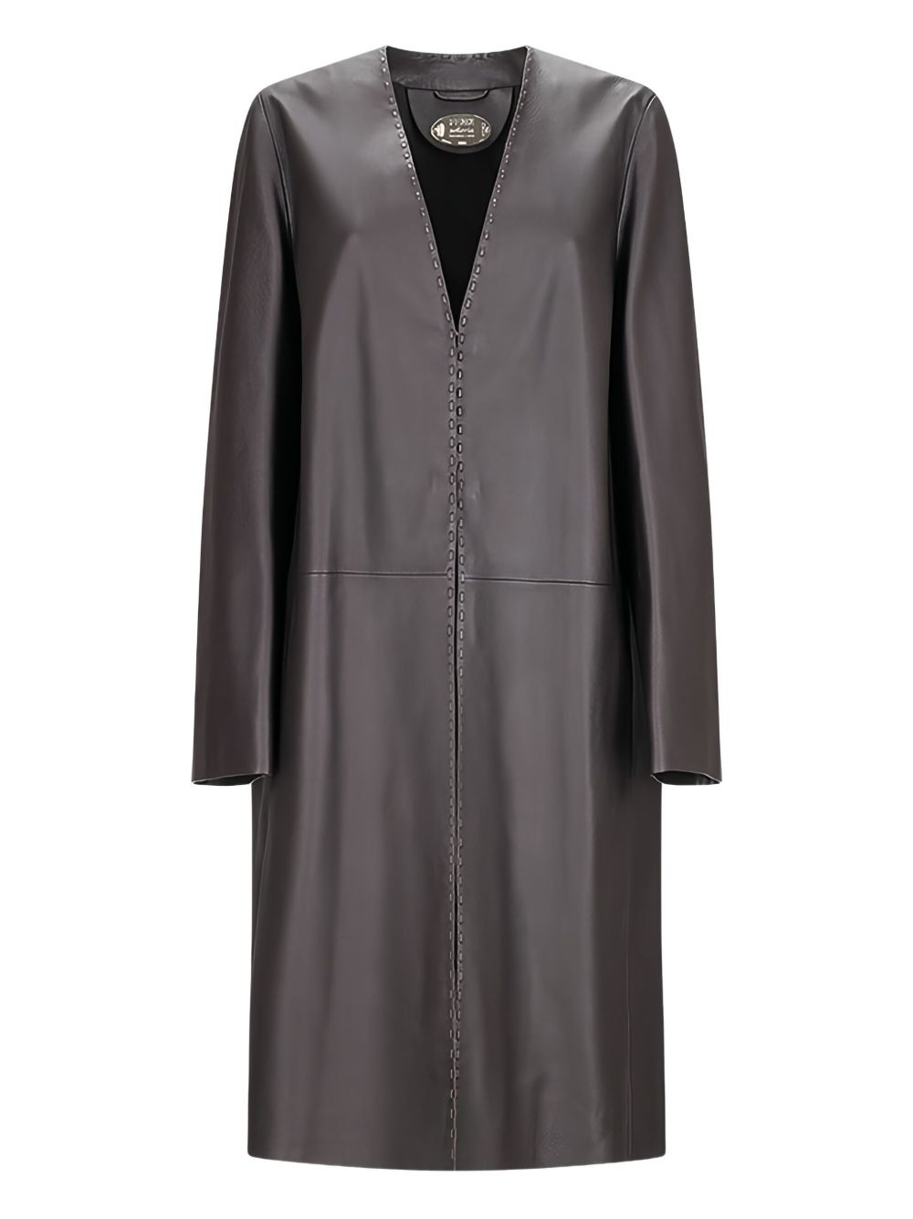 leather stitched-detail coat Highlights - Brown - Leather construction - V-neck - Long sleeves - Straight hemline Imported Composition Calf Leather 100% Washing instructions Read Manufacturer Guidelines