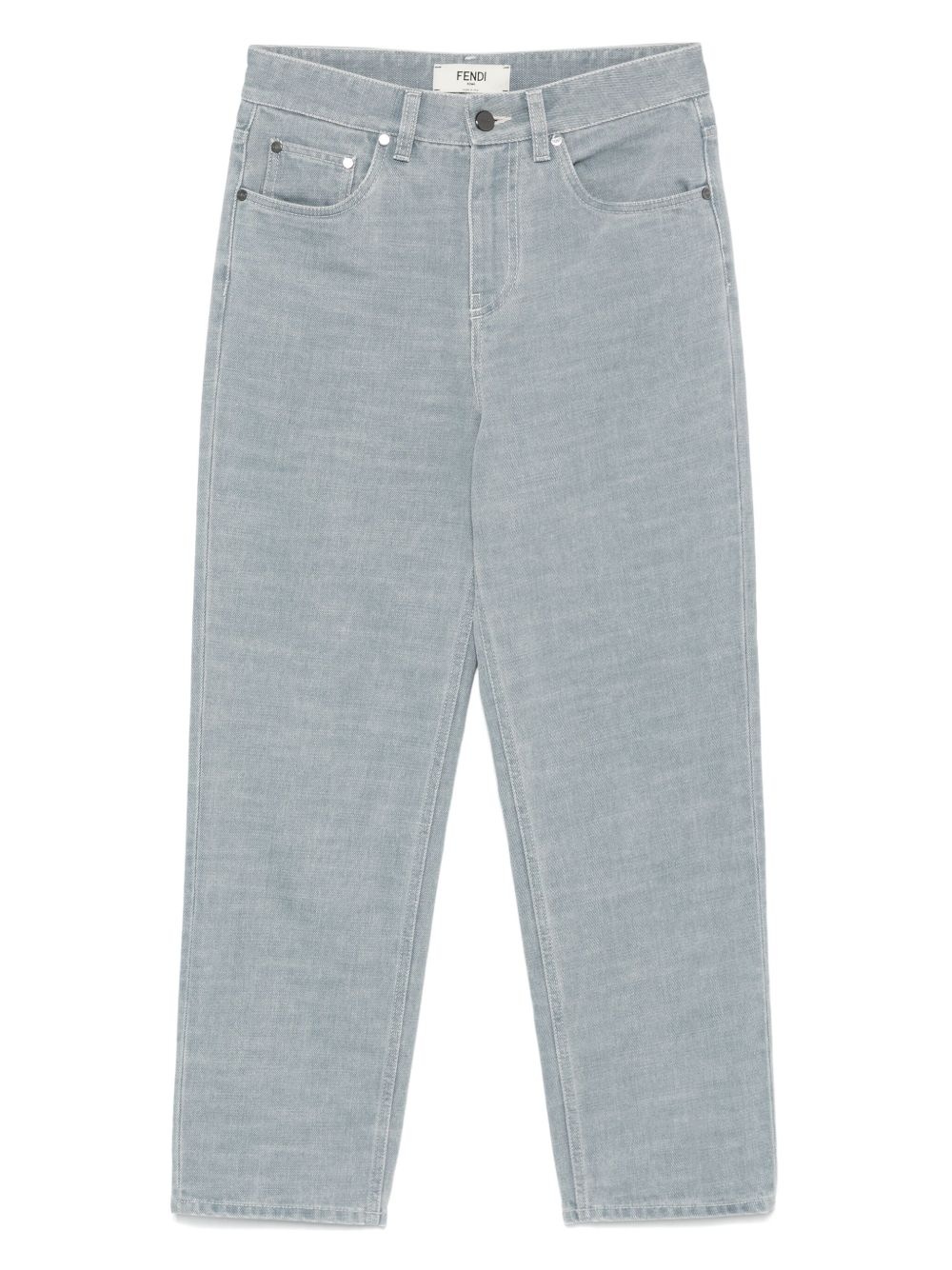 logo-embossed jeans Highlights - Cerulean blue - Concealed fly and button fastening - Belt loops - Classic five pockets Made in Italy Composition Cotton 100% SIZE & FIT Model measurements Height 5 ft 10 in(1.78 m) Bust/Chest 31.49 in(80 cm) Hips 37 in(94 cm) Waist 23.62 in(60 cm) FittingInformation Designed for a tapered fit, these jeans allow a close fit at the waist and a loose unrestricted fit over the leg with a closer fit towards the ankle Sturdy and hard-wearing, this denim piece offers no stretch