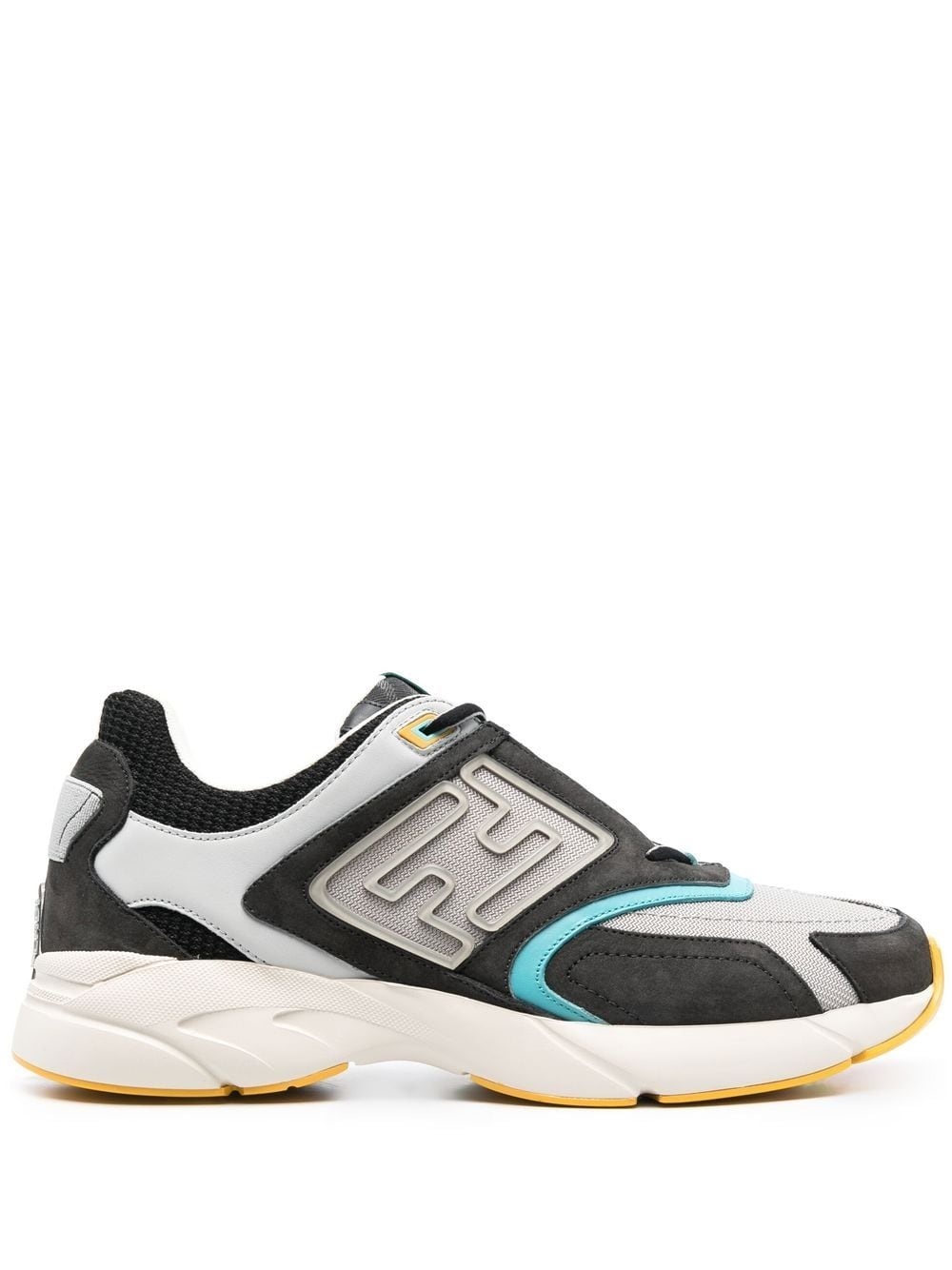 logo-embossed low-top sneakers Highlights - Grey/multicolour - Calf leather - Panelled design - Embossed logo to the side - Almond toe - Front lace-up fastening - Branded insole - Flat rubber sole Made in Italy Composition Outer: Calf Leather 100%, Fabric 100% Lining: Fabric 100% Sole: Rubber 100% SIZE & FIT Measurement HEEL 1.57 in(4 cm) Sole height 0.59 in(1.5 cm)
