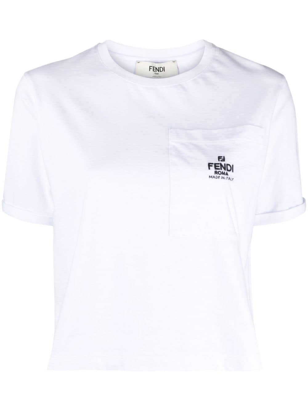 logo-embroidered cotton T-shirt Highlights - White - Cotton - Embroidered logo at the chest - Crew neck - Short sleeves - Chest patch pocket - Straight hem - Cropped Made in Italy Composition Cotton 100% Washing instructions Hand Wash