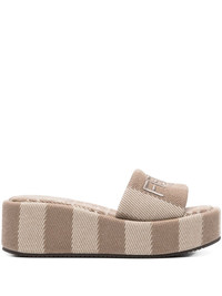 logo-embroidered slides Highlights - Olive brown - Platform wedge - Branded footbed - This piece comes complete with a protective dust bag. Made in Italy Composition Outer: Fabric 100% Lining: Calf Leather 100%, Fabric 100% Sole: Rubber 100%