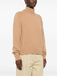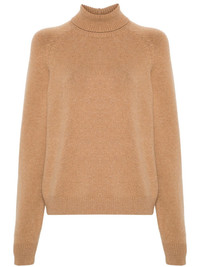 logo-embroidered sweater Highlights - Camel brown - Cashmere blend - Knitted construction - Side press-stud fastening - Ribbed trim - Roll neck - Long raglan sleeves - Decorative stitching - Embroidered logo to the side - Straight hem Made in Italy Composition Cashmere 83%, Polyamide 17% Washing instructions Hand Wash