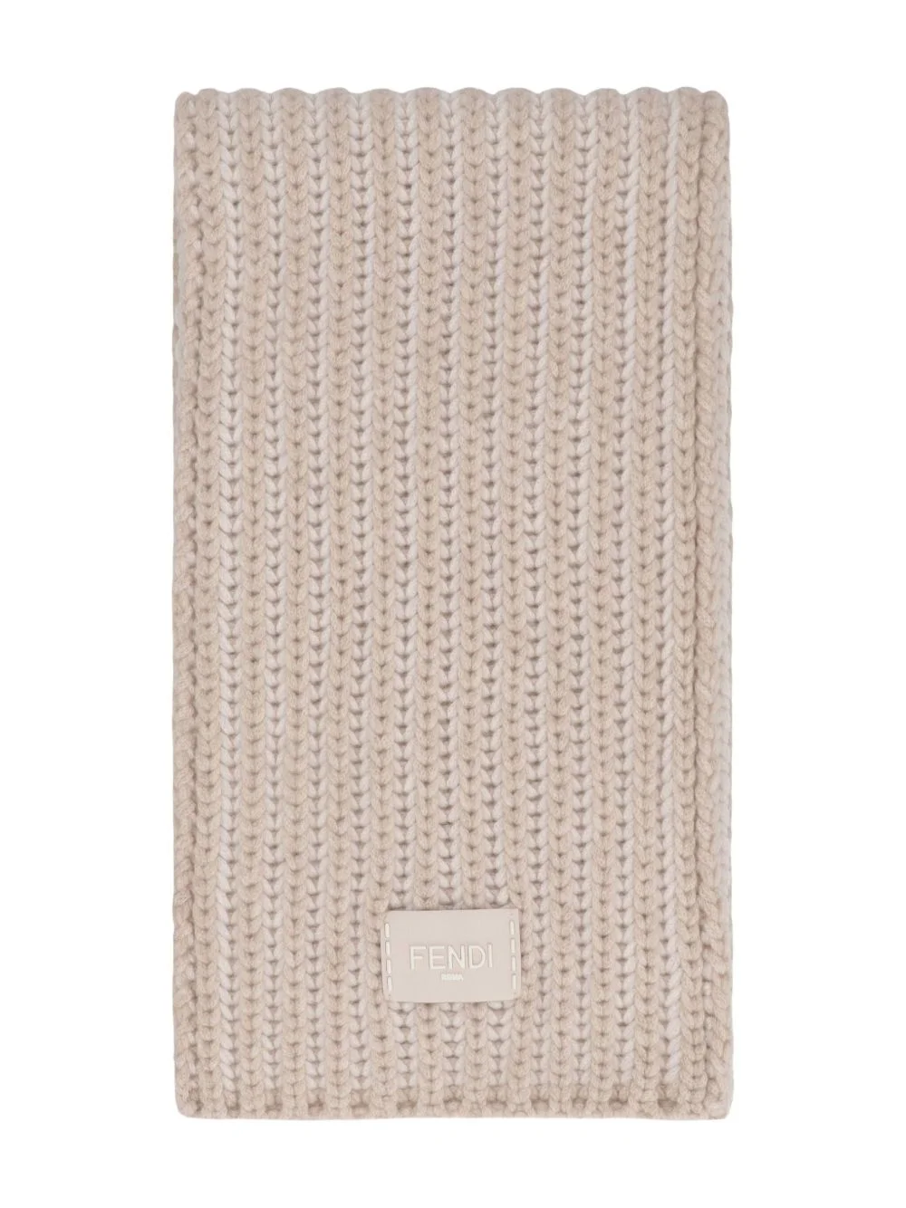 logo-patch scarf Highlights - Ivory - Logo patch - Cashmere-wool blend Made in Italy Composition Virgin Wool 85%, Cashmere 15% SIZE & FIT Measurement LENGTH 70.86 in(180 cm) WIDTH 9.84 in(25 cm)