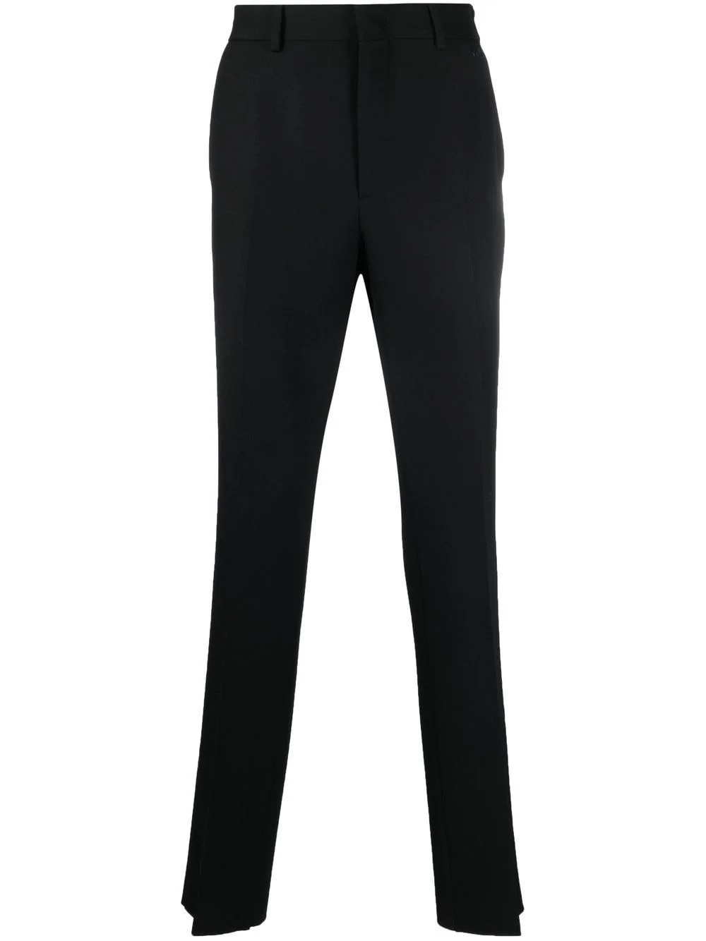 logo-plaque tailored trousers jet black virgin wool blend FF logo plaque concealed front fastening belt loops two diagonal pockets to the sides two rear welt pockets Made in Italy Composition Outer: Virgin Wool 59%, Polyester 41% Lining: Viscose 100% SIZE & FIT Model measurements Height 6 ft 2 in(1.87 m) Bust/Chest 36.41 in(92.5 cm) Hips 37 in(94 cm) Waist 29.52 in(75 cm) FittingInformation This piece fits true to size. We recommend you get your regular size Cut for a slim fit Made with a mid-weight non-stretch fabric