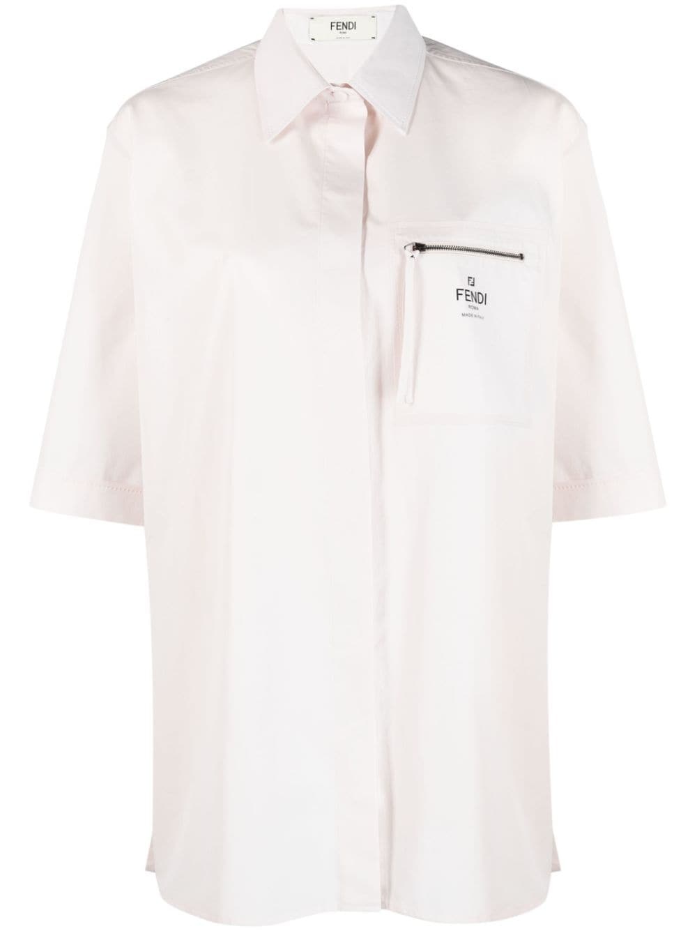 logo-print cotton shirt Fendi updates a classic cotton shirt with a subtle logo print that sits atop a contemporary zip-fastening chest pocket. Crafted from pure cotton, this iteration is delivered in an almond white. Highlights - Off-white - Cotton - Classic collar - Zip-fastening chest pocket - Logo print at the chest - Short sleeves - Concealed front button fastening - Straight hem Made in Italy Composition Cotton 100% SIZE & FIT Model measurements Height 5 ft 10 in(1.77 m) Bust/Chest 32.67 in(83 cm) Hips 35.43 in(90 cm) Waist 23.62 in(60 cm) FittingInformation Designed to be unstructured, offering a loose fit throughout Made from a midweight non-stretch fabric This piece fits true to size – take your usual size