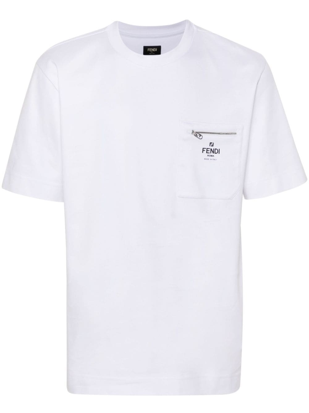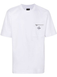 logo-print cotton T-shirt Highlights - White - Cotton - Jersey texture - Crew neck - Short sleeves - Zip-fastening chest pocket with logo print - Straight hem Made in Italy Composition Cotton 100% SIZE & FIT Model measurements Height 6 ft 2 in(1.87 m) Bust/Chest 36.41 in(92.5 cm) Hips 37 in(94 cm) Waist 29.52 in(75 cm) FittingInformation Designed for a regular fit allowing for a comfortably loose fit throughout the body Made from a midweight non-stretch fabric, this piece offers minimal elasticity when worn This piece fits true to size – take your usual size Washing instructions Hand Wash