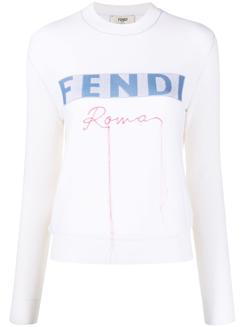 logo-jacquard sweater Highlights - Milk white - Cashmere blend - Knitted construction - Logo print to the front - Embroidered slogan - Exposed-seam detailing - Long sleeves - Crew neck - Ribbed cuffs and hem Made in Italy Composition Cashmere 88%, Spandex/Elastane 10%, Polyester 2% SIZE & FIT Model measurements Height 5 ft 10 in(1.79 m) Bust/Chest 31.1 in(79 cm) Hips 35.03 in(89 cm) Waist 24.01 in(61 cm) FittingInformation Designed for a relaxed fit, this piece allows for comfort and movement when worn Made with a midweight knit, this piece offers some stretch This piece fits true to size – take your usual size