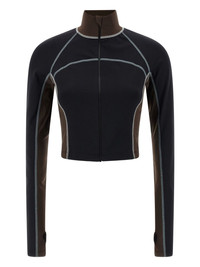 logo-print high-neck top Highlights - Black - Brown panel - Contrast stitching - High neck - Zip fastening - Logo print - Long sleeves Made in Italy Composition Polyamide 74%, Elastane 26% Washing instructions Read Manufacturer Guidelines