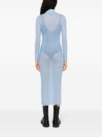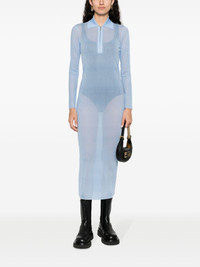 long-sleeve ribbed midi dress Highlights - Light blue - Silk blend - Ribbed knit - Front zip fastening - Classic collar - Long sleeves - Mid-length - Straight hem Made in Italy Composition Silk 96%, Polyamide 3%, Polyurethane 1% SIZE & FIT Model measurements Height 5 ft 10 in(1.79 m) Bust/Chest 33.07 in(84 cm) Hips 35.82 in(91 cm) Waist 24.01 in(61 cm) FittingInformation Designed for a close fit throughout Made with a lightweight knit, this piece offers some stretch This piece fits true to size – take your usual size