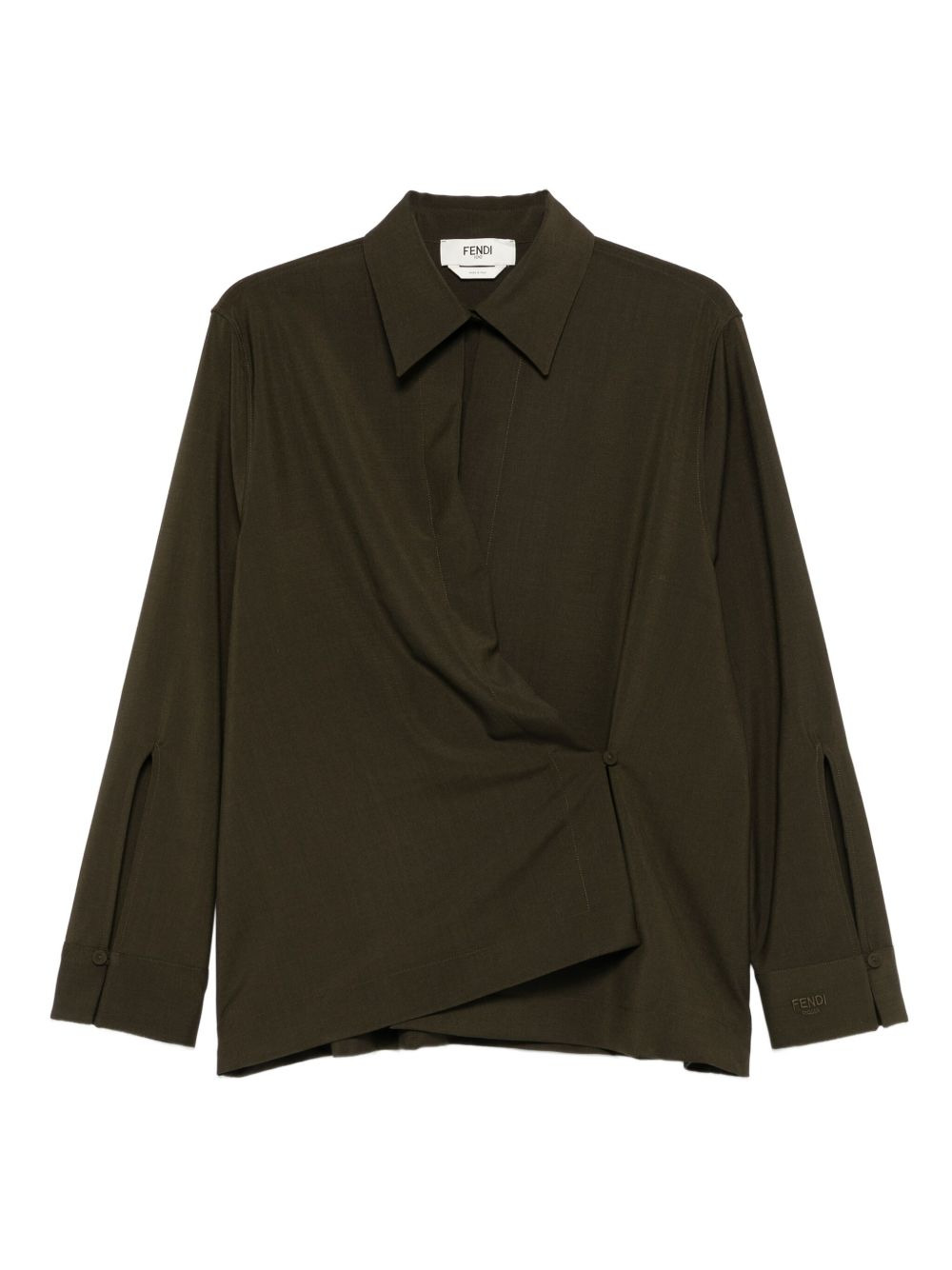 long-sleeve shirt Highlights - Olive green - Draped detail - Buttoned cuffs - Classic collar Made in Italy Composition Wool 75%, Mohair 25% SIZE & FIT Model measurements Height 5 ft 8 in(1.73 m) Bust/Chest 29.92 in(76 cm) Hips 33.07 in(84 cm) Waist 23.22 in(59 cm) Washing instructions Read Manufacturer Guidelines