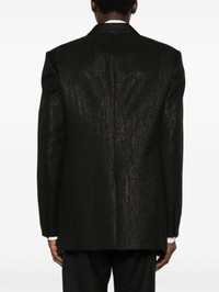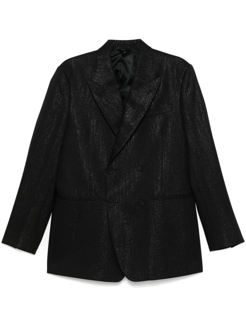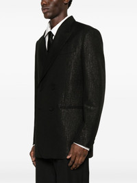 lurex blazer Highlights - Black - Virgin wool blend - Twill weave - Lurex detailing - Double-breasted button fastening - Peak lapels - Long sleeves - Buttoned cuffs - Chest welt pocket - Dart detailing - Two side welt pockets - Central rear vent - Full lining - Internal slip pocket - Straight hem Made in Italy Composition Outer: Virgin Wool 70%, Viscose 25%, Polyester 3%, Polyamide 2% Lining: Cupro 100% SIZE & FIT Model measurements Height 6 ft 2 in(1.87 m) Bust/Chest 35.03 in(89 cm) Hips 34.64 in(88 cm) Waist 25.98 in(66 cm) FittingInformation Designed for a slim fit, offering a comfortable fit that sits just away from the body The vented hem offers movement at the rear Made from a midweight non-stretch fabric