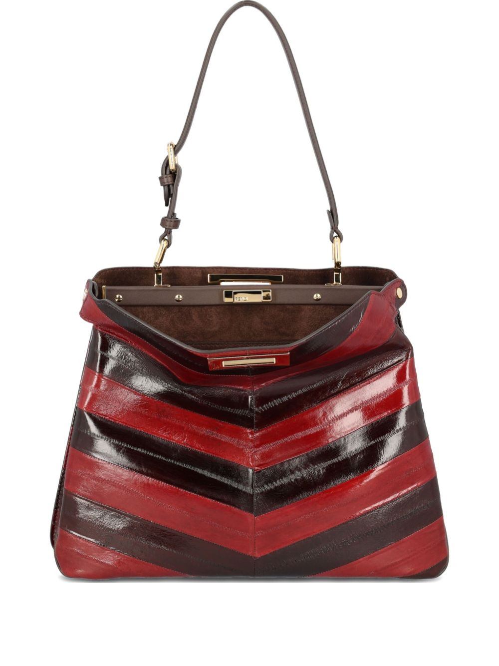 medium Peekaboo Soft shoulder bag Highlights - Dark-red and brown - Chevron pattern - Top handle - Flap closure - Gold-tone hardware - Leather construction Made in Italy Composition Outer: Inshore Hagfish 100% Lining: Calf Leather 100% SIZE & FIT Measurement DEPTH 3.93 in(10 cm) HEIGHT 10.03 in(25.5 cm) WIDTH 12.99 in(33 cm)