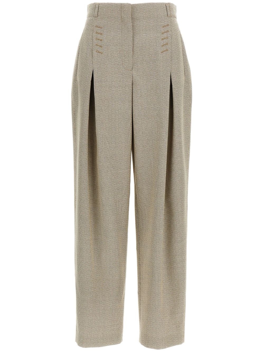 micro-check trousers Highlights - Beige - Concealed front fastening - Two side slit pockets - Rear welt pocket - Inverted pleat Made in Italy Composition Wool 100% SIZE & FIT FittingInformation Designed for a tapered fit, these trousers allow for a close fit at the waist and a loose unrestricted fit over the leg with a closer fit towards the ankle Made from a midweight non-stretch fabric