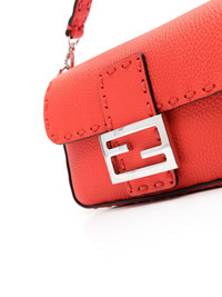 Baguette leather mini bag Highlights - Red - Calf leather - Pebbled texture - Single detachable top handle - Detachable chain-link shoulder strap - Foldover top - Whipstitch detailing - Main compartment - Internal card slot - Internal logo plaque - Silver-tone ff clasp Made in Italy Composition Outer: Calf Leather 100% SIZE & FIT Model measurements Height 5 ft 11 in(1.8 m) Bust/Chest 32.67 in(83 cm) Hips 36.22 in(92 cm) Waist 24.4 in(62 cm) Measurement DEPTH 1.96 in(5 cm) HANDLE 3.54 in(9 cm) HEIGHT 4.33 in(11 cm) STRAP 49.21 in(125 cm) WIDTH 7.87 in(20 cm)