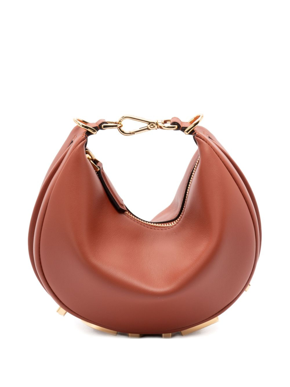 mini Fendigraphy leather shoulder bag Highlights - Brown - Calf leather - Gold-tone lettering logo - Zip fastening - Detachable shoulder-strap Made in Italy Composition Outer: Calf Leather 100%