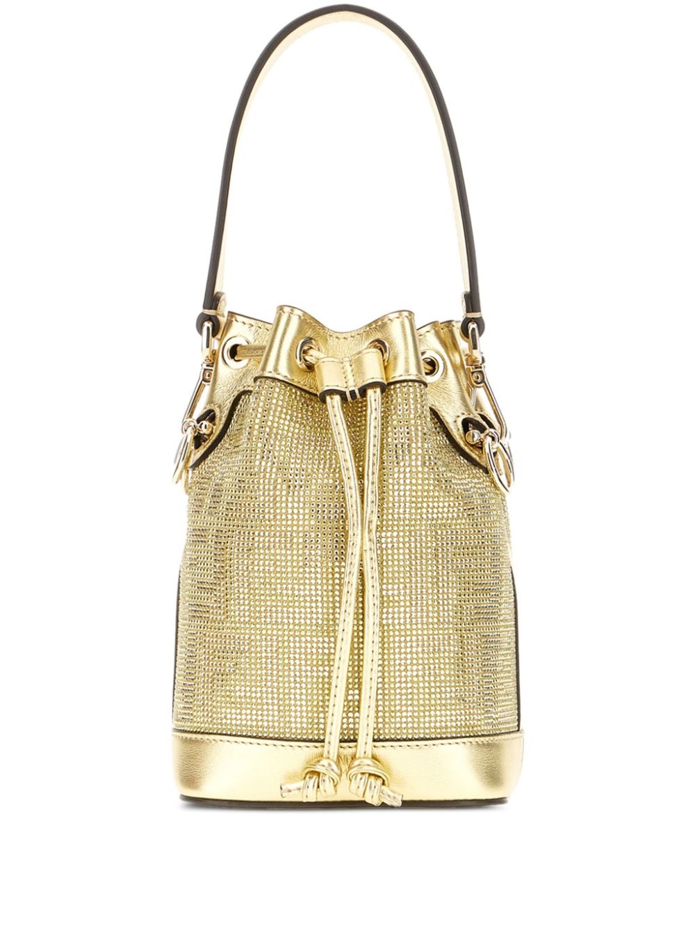 mini Mon Tresor bucket bag Highlights - Gold-tone - Drawstring fastening - Single detachable top handle - Rhinestone embellishment Made in Italy Composition Outer: Calf Leather 100%, Crystal 100%, Calf Suede 100% SIZE & FIT Measurement DEPTH 4.72 in(12 cm) HEIGHT 7.08 in(18 cm) WIDTH 5.51 in(14 cm)