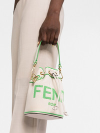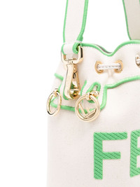 Mon Tresor canvas bucket bag Mon Tresor canvas bucket bag from FENDI (VIP) featuring cream white, fluorescent green and calf leather. Made in Italy Composition Outer: Calf Leather 100%, Fabric 100% SIZE & FIT Model measurements Height 5 ft 11 in(1.8 m) Bust/Chest 32.67 in(83 cm) Hips 36.22 in(92 cm) Waist 24.4 in(62 cm) Measurement DEPTH 3.93 in(10 cm) HANDLE 4.72 in(12 cm) HEIGHT 7.48 in(19 cm) MAXIMUM WIDTH 4.72 in(12 cm) MINIMUM WIDTH 3.54 in(9 cm) STRAP 20.47 in(52 cm)