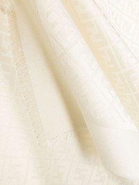 monogram-pattern print scarf light beige wool-silk blend monogram pattern logo print to the front frayed edge Made in Italy Composition Silk 60%, Wool 40% SIZE & FIT Measurement LENGTH 55.11 in(140 cm) WIDTH 55.11 in(140 cm) Washing instructions Dry Clean Only